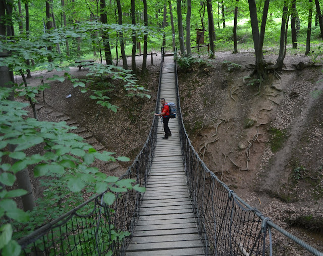 Volvemos los pasos atras, hasta el paso a nivel de la linea de ferrocarril donde retomamos las señales del Orszagos kektura, las seguimos hasta un río, nada mas cruzar el puente tomamos un camino que sale a la izquierda, al poco tiempo se mete en un prado y vuelve a cruzar la linea de ferrocarril que ha dado una gran curva, para meternos en el bosque y hacer un corto e intenso ascenso a través de él hasta llegar a una cresta donde el sendero ondula a derecha e izquierda evitando la arboleda.