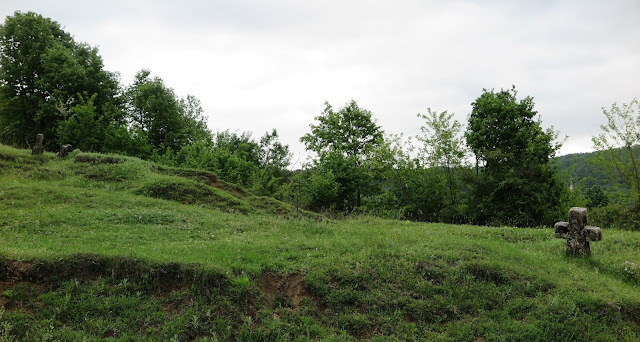 Llegamos a un alto, buenas vistas de Sitani y las sierras que se encuentran al este, descendemos cortando un par de curvas del camino pero entramos en un viejo cementerio con sus cruces semienterradas.